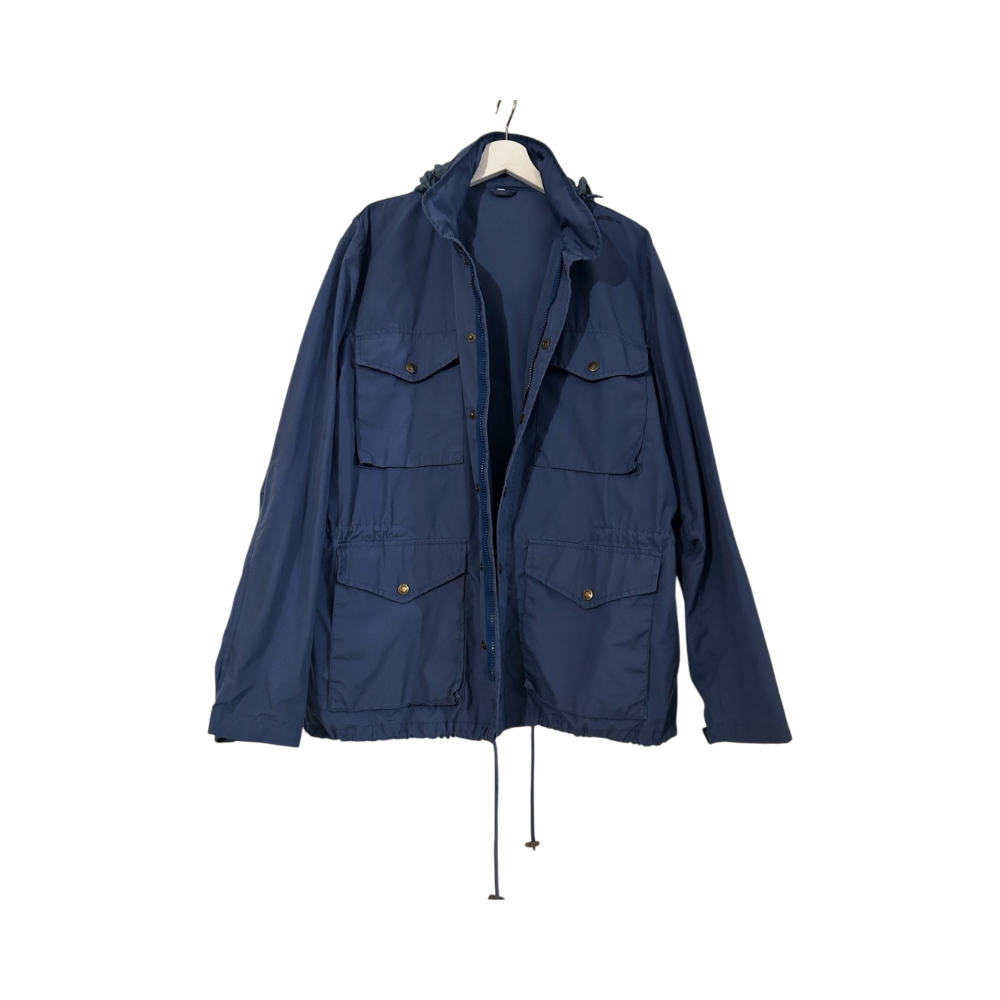 Kevyt, hupullinen parka neljällä etutaskulla. Ajan tuomaa patinaa, mutta tosi hyvässä kunnossa. Koko 52.