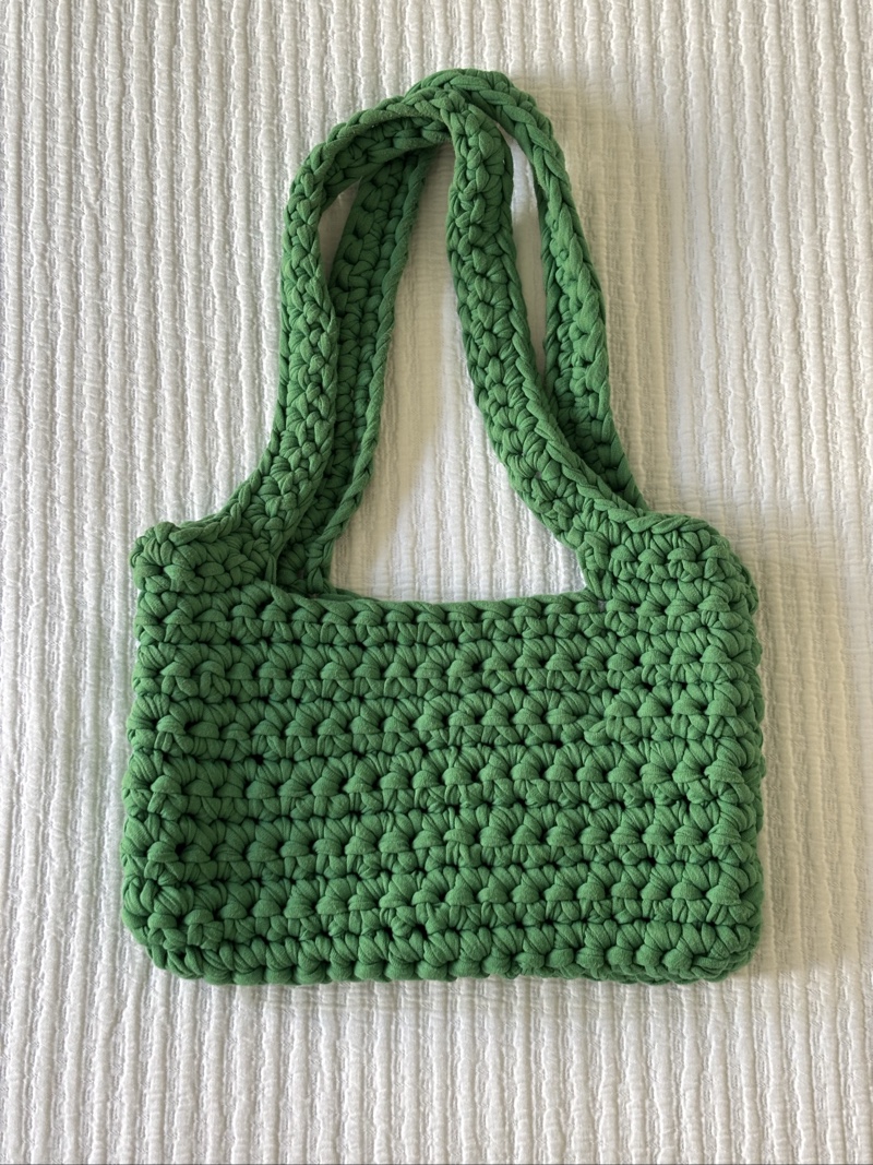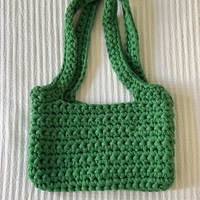 Itse virkattu vihreä pikkulaukku. Ollut käytössä muutaman kerran.