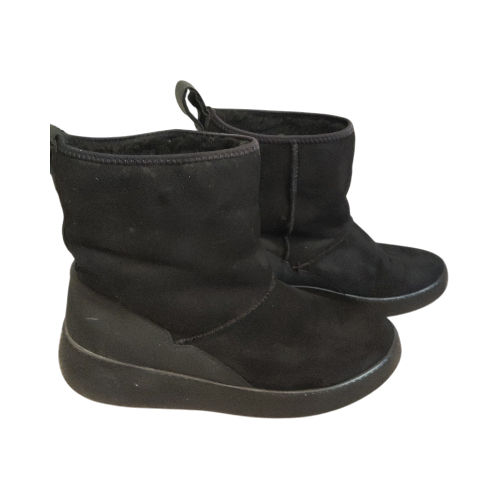 Eccon luumunväriset UGG-tyyppiset talvinilkkurit pakkaskeleille, koko 38. Muhkea ja lämmin pörröinen sisävuori ja mokkanahkaa päällinen.
