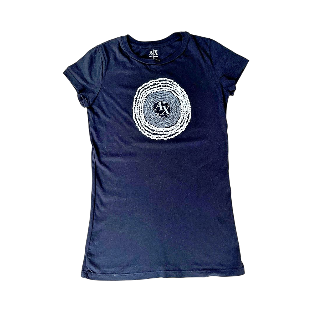 Naisten musta Armani Exchange t-paita paljeteilla edessä. Käyttämätön.