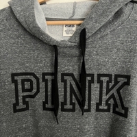 Harmaa Victoria’s Secret Pink huppari. Mustalla tekstillä hupparin etuosassa lukee Pink. Ostettu monta vuotta sitten mutta käytetty vähän. Tosi pehmeää ja ihanaa kangasta.