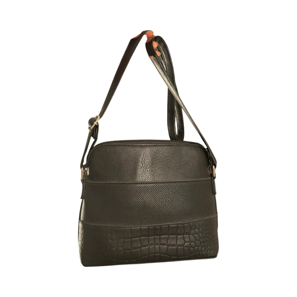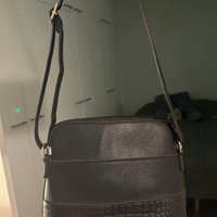 Structured black shoulder bag with textured panels, zip closure. No tags but new, from Spain.