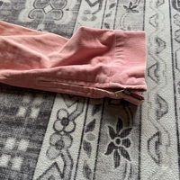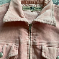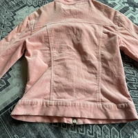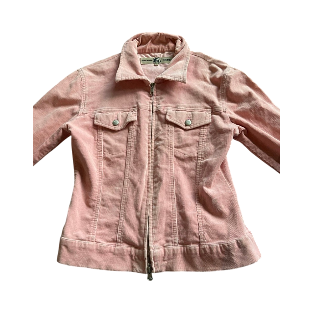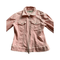 Vaaleanpunainen corduroy-farkkutakki, vetoketju, taskut.