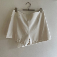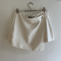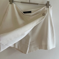 Kietaisuhame / shortsiyhdistelmä. Kietaisuhame on ommeltu hopeisella koristenapilla kiinni, ei irroitettava. Sivulla vetoketju.