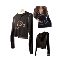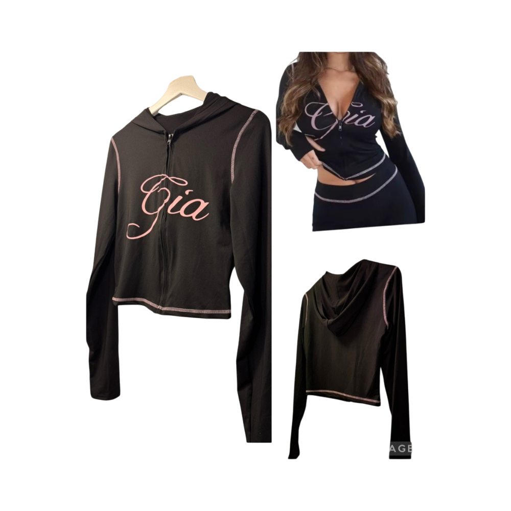 Lyhyt vetoketjuhuppari, pinkillä kirjauksella ja saumoilla. Korealainen merkkiä
