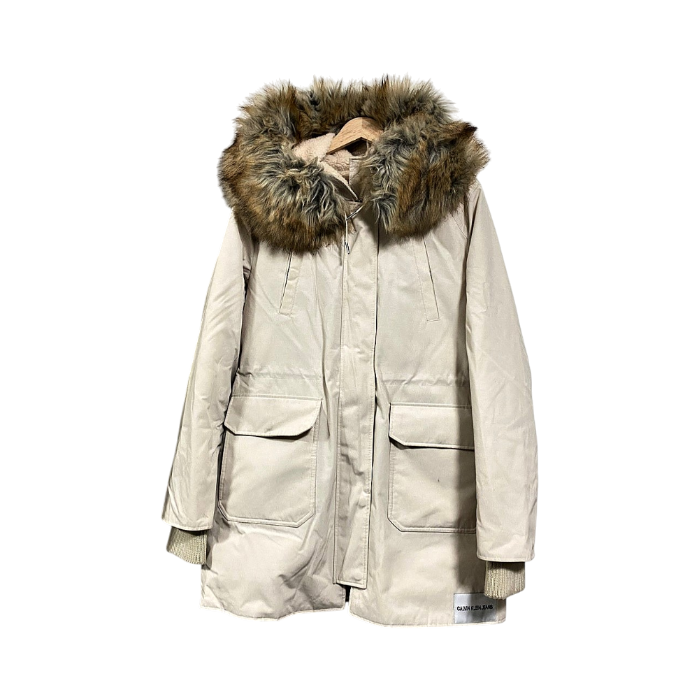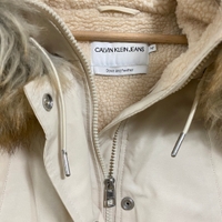 Luonnonvalkoinen naisten talvitakki/untuvatakki, merkki Calvin Klein. Koko M, sopii 38-40 kokoiselle. Kainalo-kainalo 52cm, pituus 80cm.