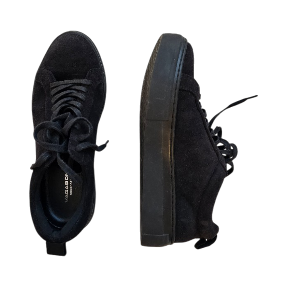 Mustat platform-tennarit, mokkanahkainen pinta, nauhakiinnitys.