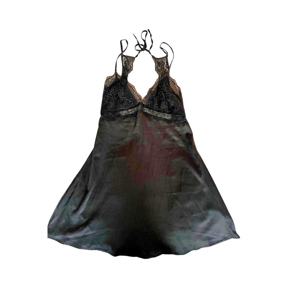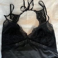 Tyylikäs, musta yömekko, koko S. Vähän nyppääntymää pitsissä.