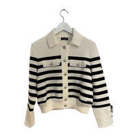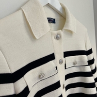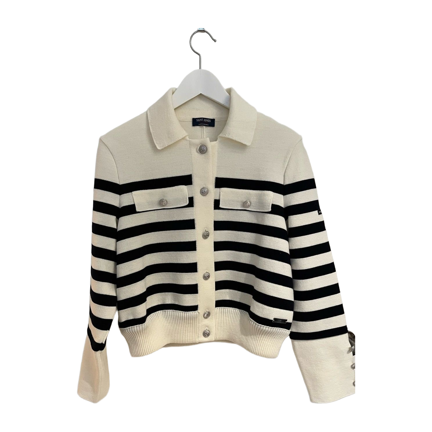 Kahdesti käytetty ranskalaisen Saint Jamesin upea merinoneuletakki. Erittäin hyvälaatuista materiaalia, hopeiset ankkurinapit, resori alareunassa ja valetaskut edessä. Vähän Sezanen Betty-neuletakin tyyppinen. Koko ranskalainen 38. 🤍