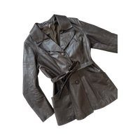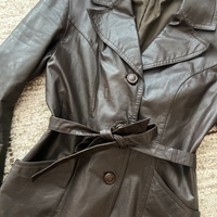 Kaunis Suomessa valmistettu nahkatrenssi, vastaa arviolta kokoa s. Siistissä kunnossa. Pituus 72cm ja kai kai mitta noin 46cm. Vuoritettu
