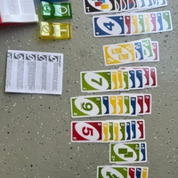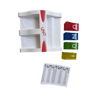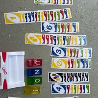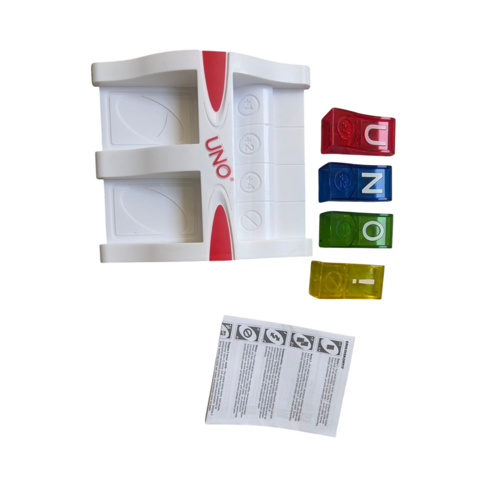 UNO-pelialusta ja pelikortit, mukana nappulat.