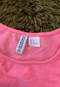 Vaaleanpunainen lyhyt toppi, kevyt ja mukava käyttää. Sanoisin väriä enemmän Neon pinkiksi