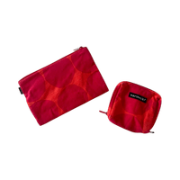 sisäpinta/vuori: 100% Polyamidi. Molemmissa pientä käytönjälkeä, mutta yleisilme siisti. Pienemmässä pussukassa pientä kulumaa kulmissa (kts. kuvat), isompi paremmassa kunnossa. Värit: punainen, oranssi. Myydään yhdessä, hintapyyntö yhteensä 20e.
