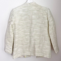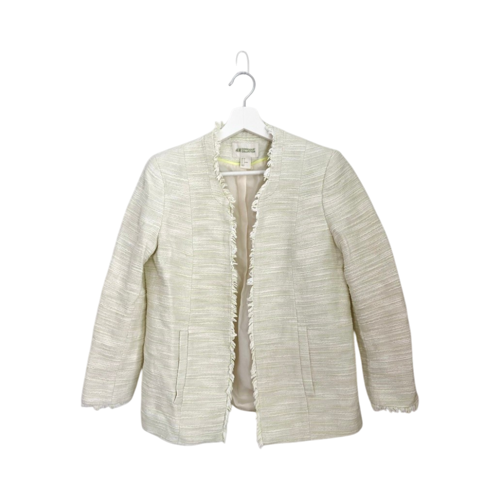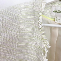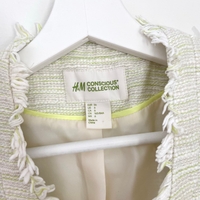 Siistissä käytetyssä kunnossa oleva H&M:n Conscious -malliston jakku. Päällismateriaali puuvillaa & pellavaa. Toisessa hihassa pieni ompeleen purkauma (ks. kuva). Koko 36. Kainalo-kainalo n. 46cm, hartia-harttia 37,5 cm. Pituus takaa keskeltä n. 59cm.