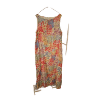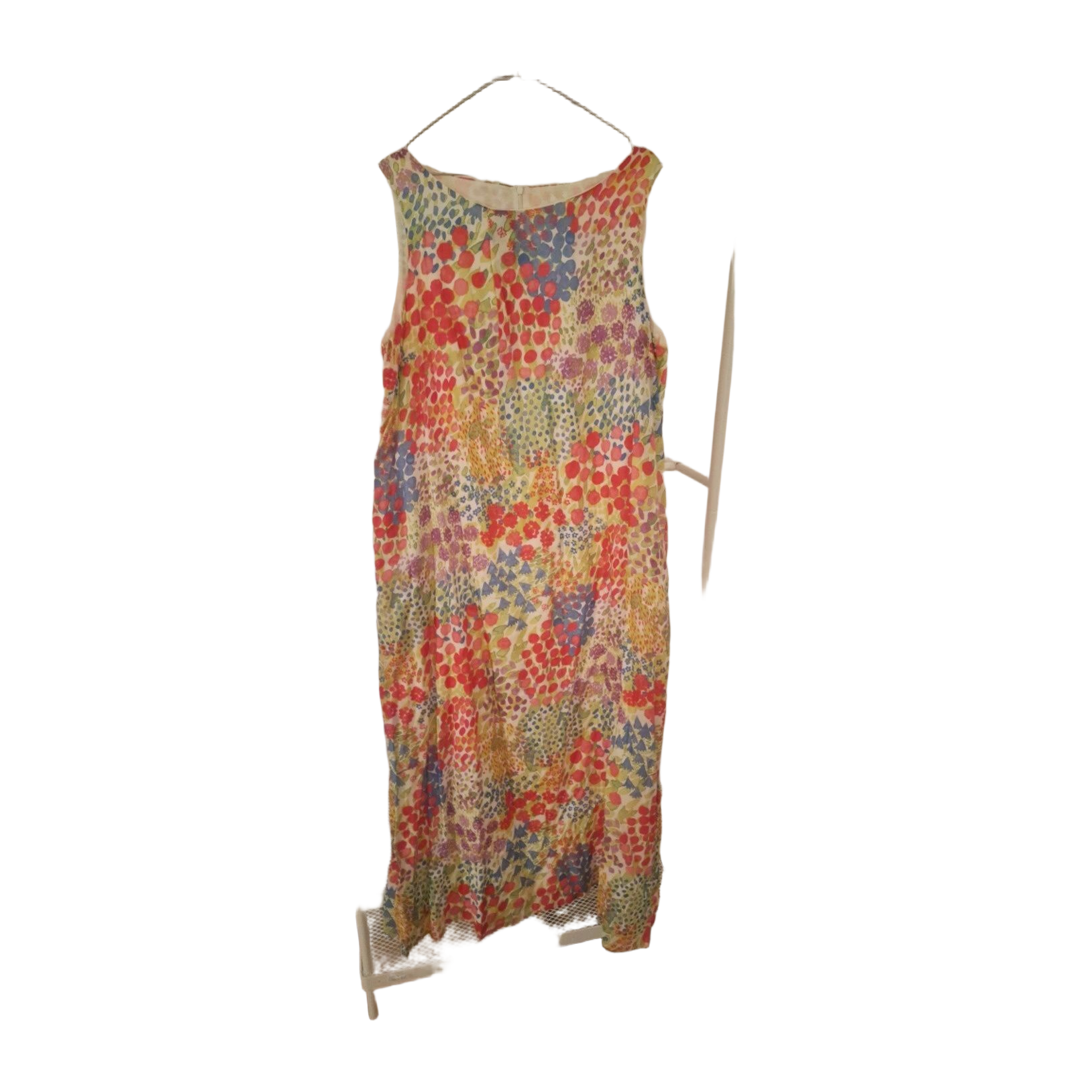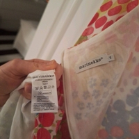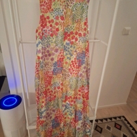 Marimekon värikäs maksimekko. Olka-helma pituus 147cm, kai-kai 56cm. Takana vetoketju. Edessä muotolaskos. Kerran käytetty ja pesty.