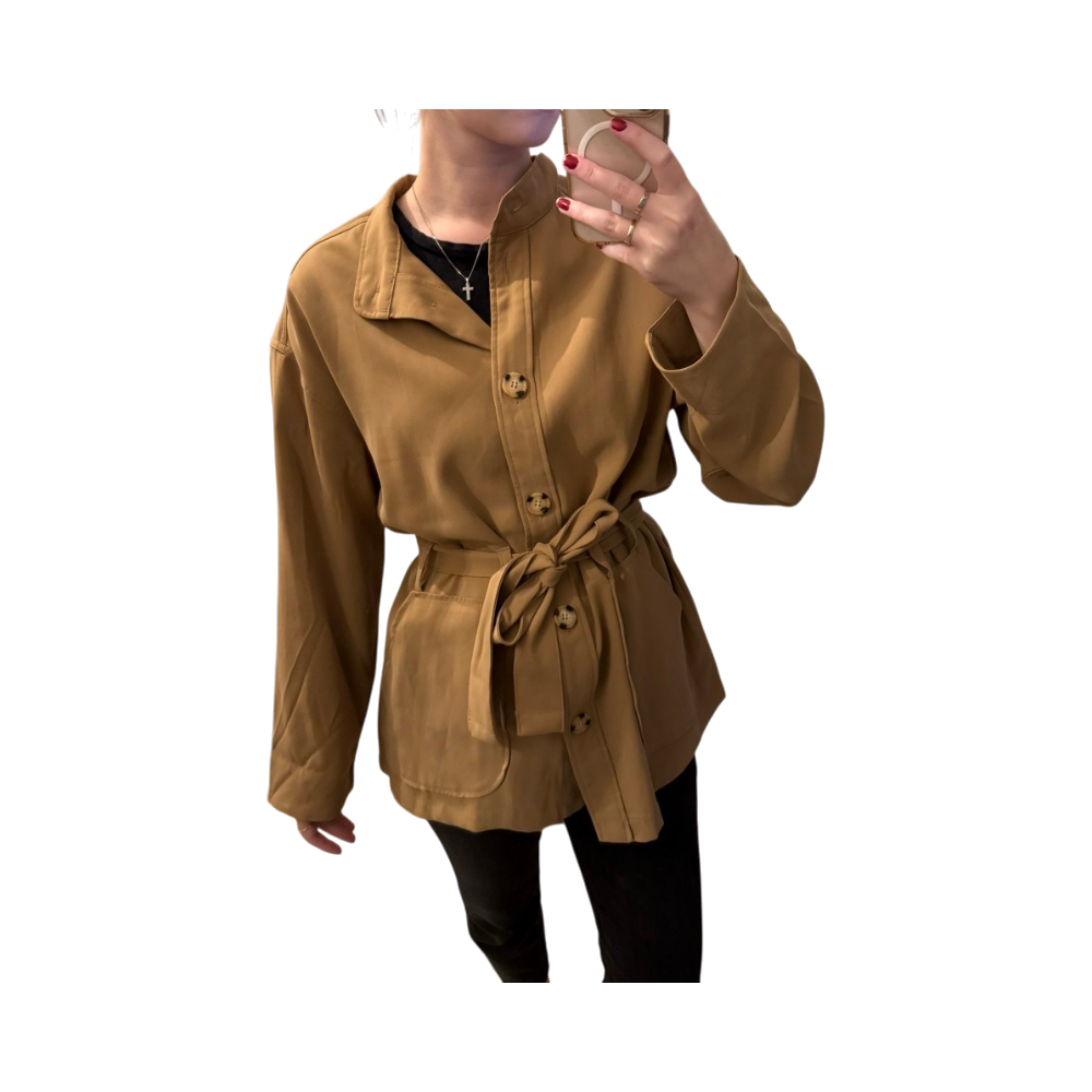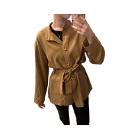 Vyötäröllä solmittava kevyt takki, napit edessä, taskut.
