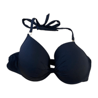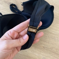 Musta käyttämätön bikini yläosa kultaisen värisillä yksityiskohdilla. Koko 85E.