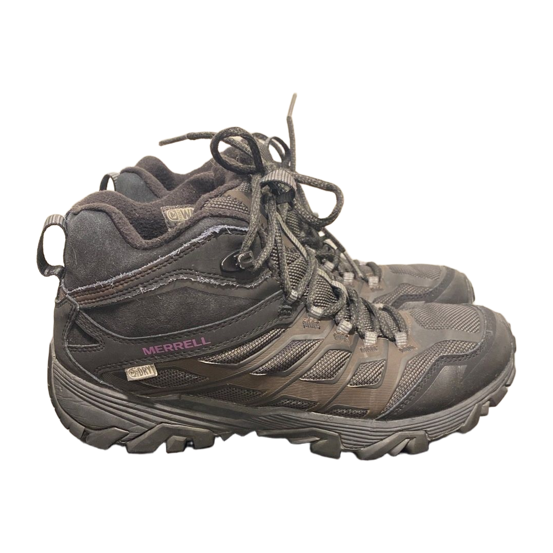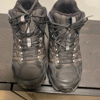 Mustat vaelluskengät, koko 39. Käytetty kohtalainen kunto. Siisti yleisilme, pieniä virheitä (toisessa kengässä pieni rispauma sivussa) ja pohjalliset olisi hyvä vaihtaa, (nykyisissä koiran karvoja jotka eivät lähde pesussa). Osa mustista kohdista hieman haalistunut. Muuten täysin ehjät ja esim. pohjissa ei mitään kulumaa.