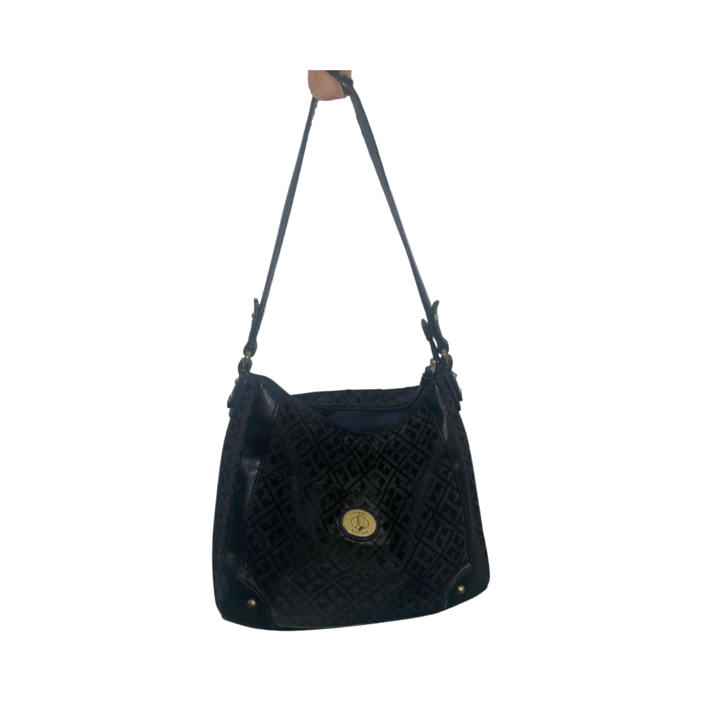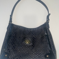 Klassinen musta olkalaukku, tilava sisätaskuilla. Laukussa käytönjälkiä, enimmäkseen hihnassa yhdessä kohdassa. Laukun kunto huomioitu hinnassa.