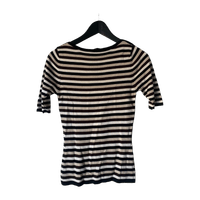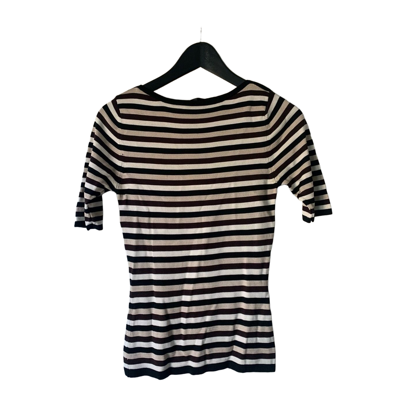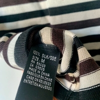Hyväkuntoinen August Silk silkkineule. Koko M, mutta vastaa enemmän XS/S-kokoa. 100% silkkiä. Ruskeat, beiget ja valkoiset raidat. #silkki #silk #augustsilk #raitapaita