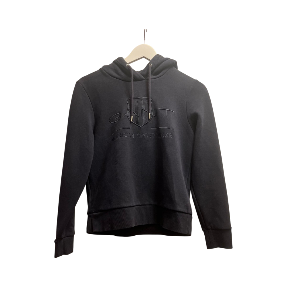 GANT, hupullinen tummansininen huppari, hyväkuntoinen. Pieni lankapätkä toisessa käsivarressa, todella huomaamaton (siitä kuva). Käytetty vain pari kertaa.