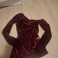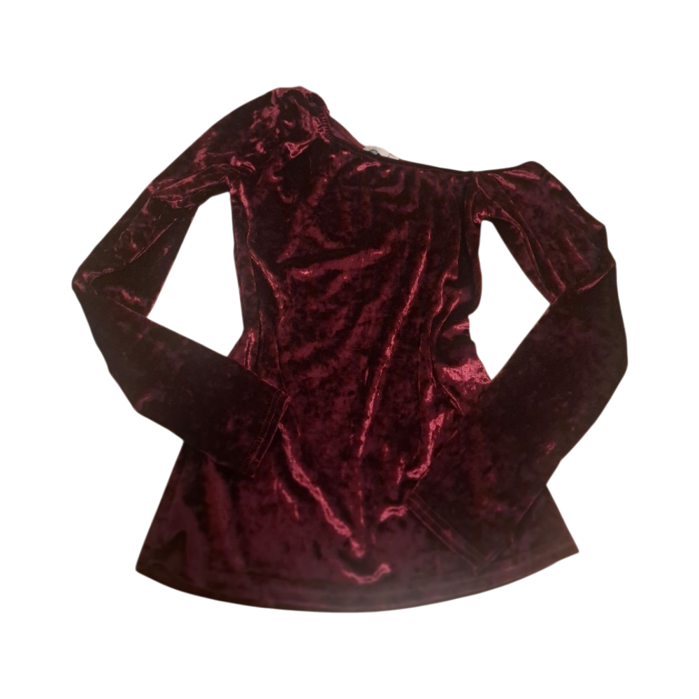 Pitkähihainen burgundyn samettipaita, juhla paita, Olkapäät paljaiksi menevä toppi on erittäin tyylikäs.