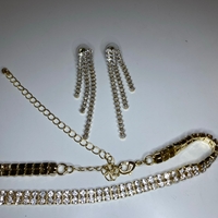 kultainen strass-choker ja korvakorut