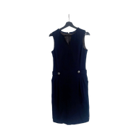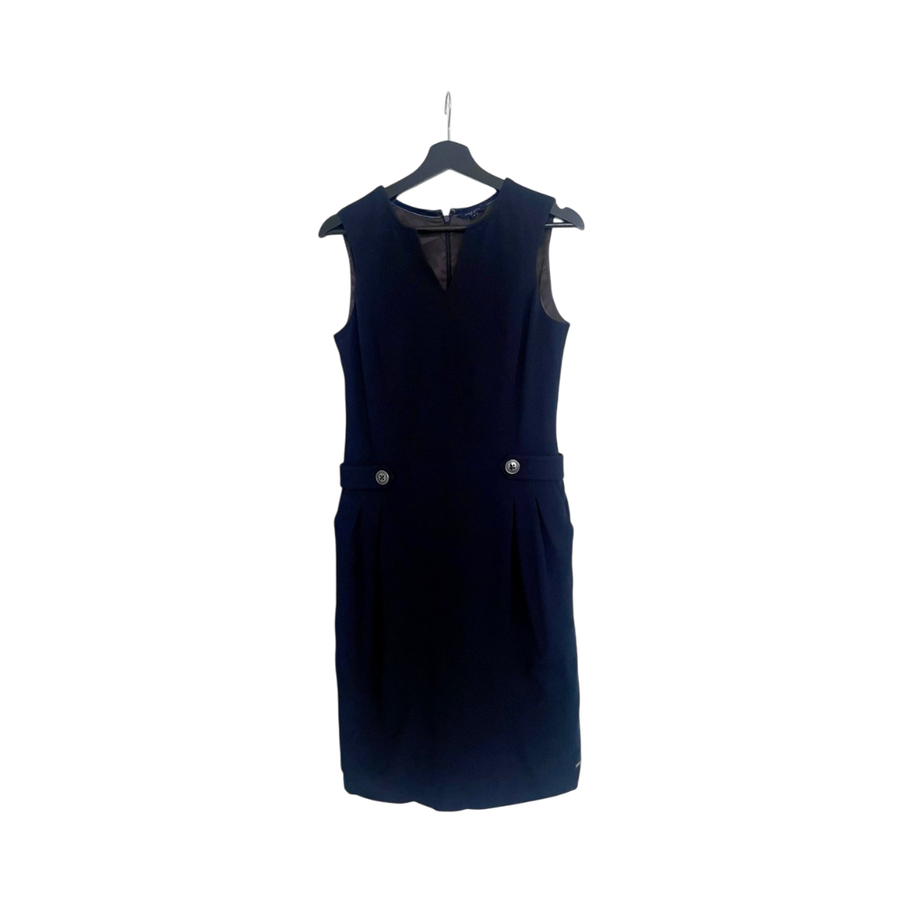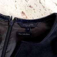 Tommy Hilfiger tummansininen mekko. Koko 6 ja vastaa kokoa 38. Mekko on valmistettu laadukkaasta materiaalista, jossa on vetoketju takana. Sopii erilaisiin tilaisuuksiin kuin myös arkeen. Olka-helma n. 93cm, ja tulee itselläni hieman polven yläpuolelle. Mekon alla kiinni alusmekko. Sivuilla pienet taskut. Hyvässä kunnossa.