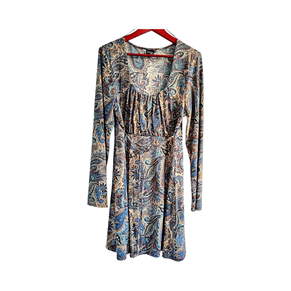 Multicolor patterned long sleeve dress