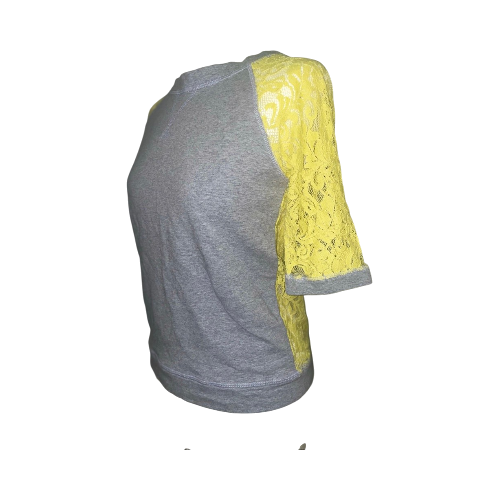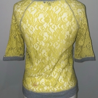 Kevyt pitsiyläosa, harmaat yksityiskohdat, vartalonmyötäinen malli.