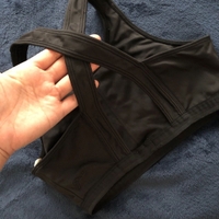 A Japanese brand sport bra, bought this long time ago. Due to the logo doesn’t show it clear, I do not remember what brand is it. Good condition with nice looking crossback.