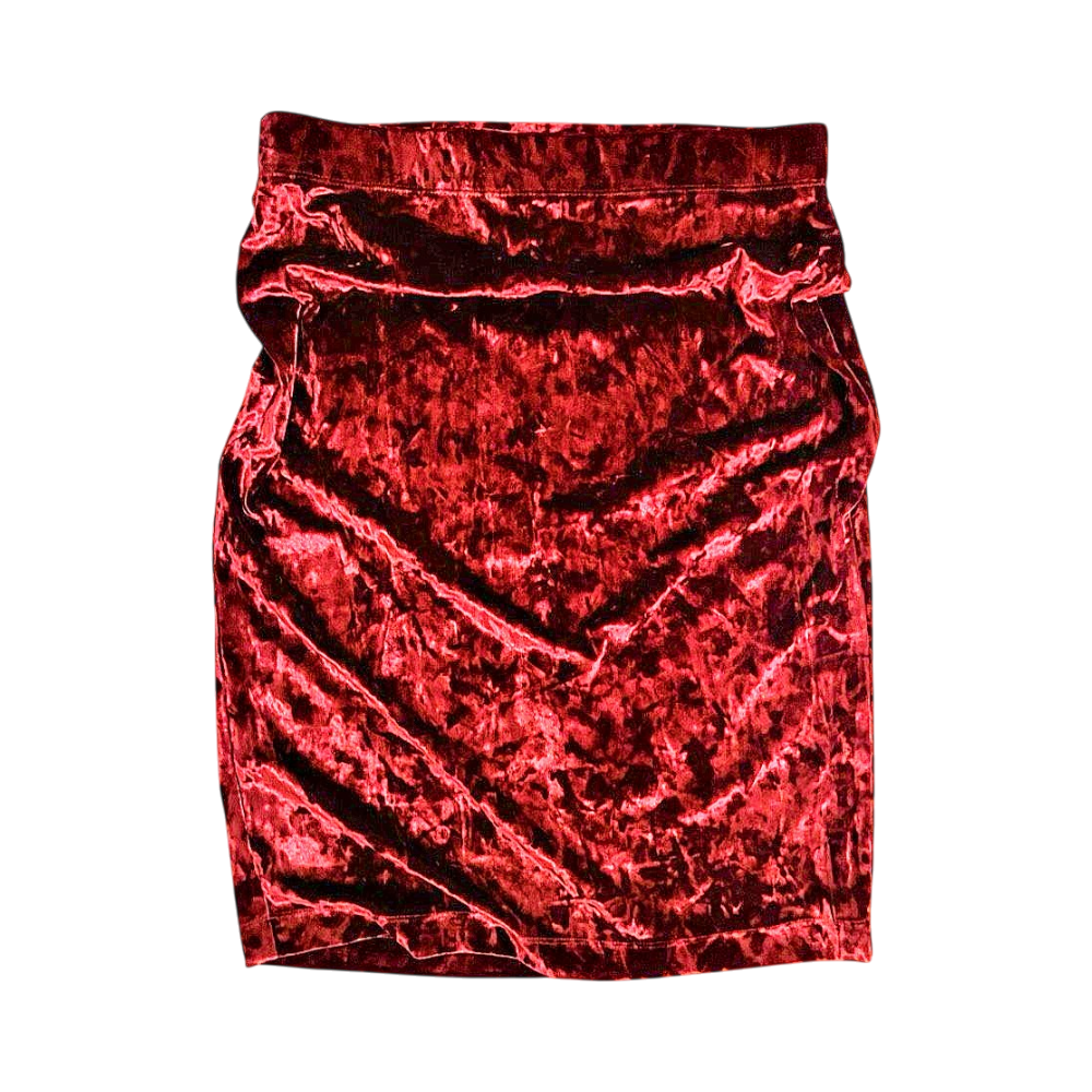 Tyylikäs tummanpunainen samettinen hame, erinomainen kunto 💋 Todellinen väri toisessa kuvassa. Pituus hieman yli polven. Takana pieni halkio.