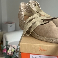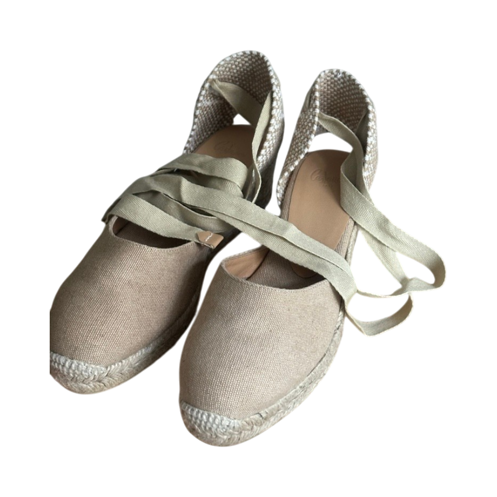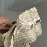 Beiget nyörilliset espadrillot, platform-korko, hyväkuntoiset.