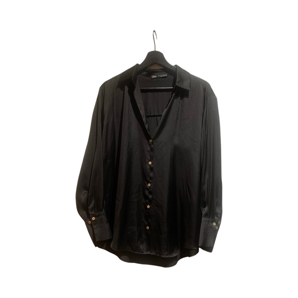 Zaran musta satiinipusero koossa s. Ihana tulevaan juhlakauteen. Polyesteriä, materiaalilappu poistettu. Viimeisessä kuvassa näkyy nappejen oikea sävy.