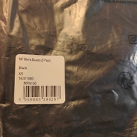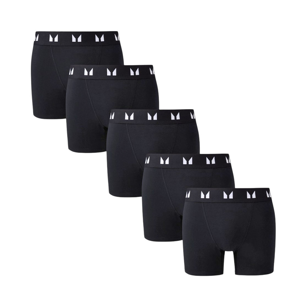 Viisi mustaa bokseria, luonnollisesti avaamattomassa pakkauksessa, toimitettu väärää kokoa.