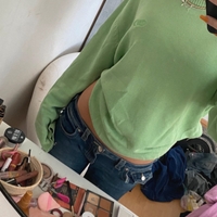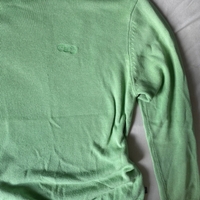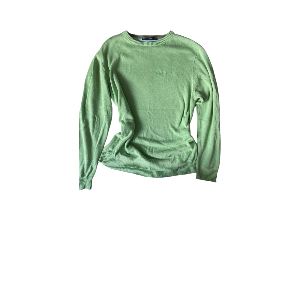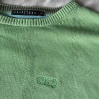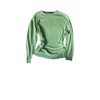 Vaalea vihreä pyöreäkauluksinen neule, klassinen istuvuus.