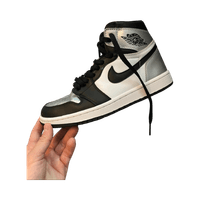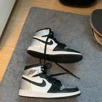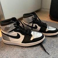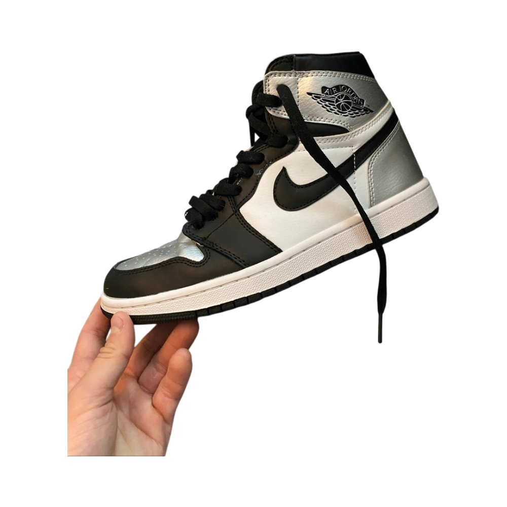 Jordan 1 high silver toe size 40. The shoes are worn but have been cleaned and the laces changed (the old ones broke). The shoes have minor flaws and have creases but are in good condition otherwise.