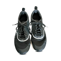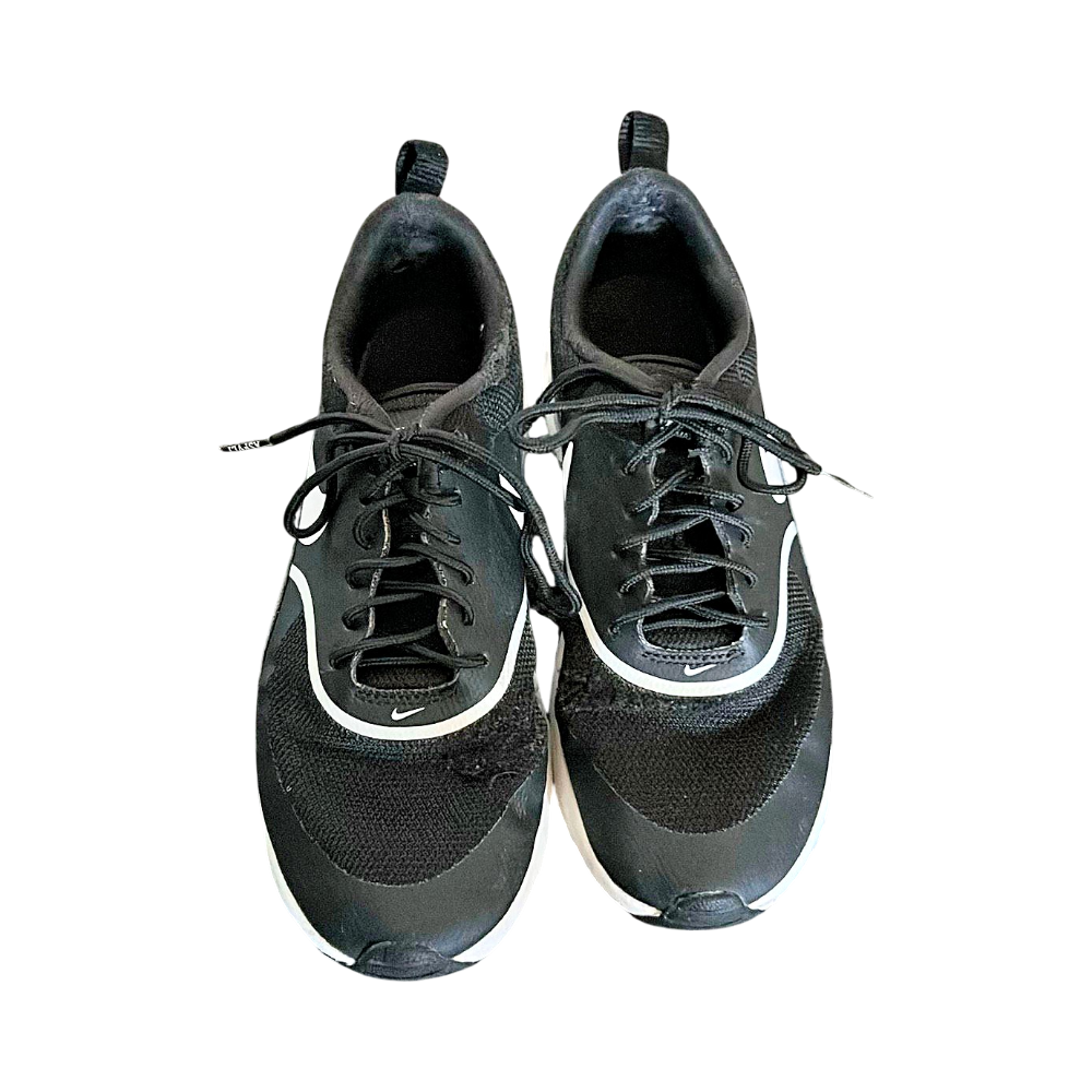 Hyvin käytetyt mustat Nike Air Max Thea-kengät. Jonkin verran käytön jälkiä, esim edestä hieman rispaantuneet ja kantapäiden kohdalta kuluneet. Muuten hyvät. Kengännauhat vaihdettu ohuempiin.