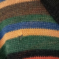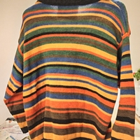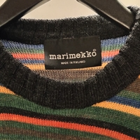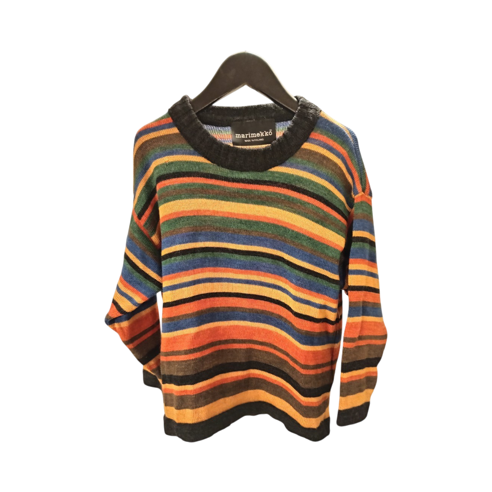 Lasten, värikäs MARIMEKKO vintage raidallinen villapaita, pieni reikä edessä. Koko 120cm.