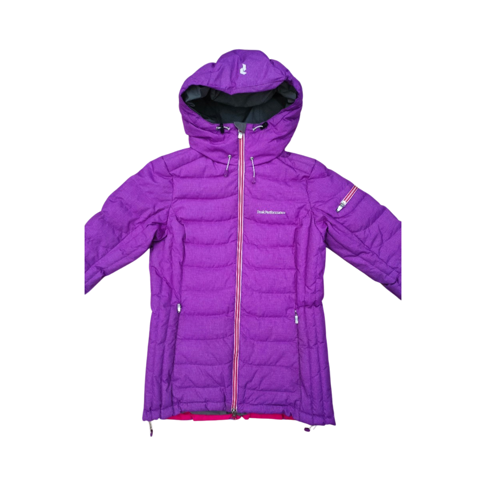 Peak Performance- violetti talvitakki. Ollut käytössä vain muutaman kerran. Uutta vastaava kunto. Koko S.