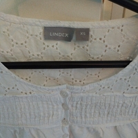 Valkoinen lyhythihainen pusero, napit edessä, pitsiyksityiskohta
