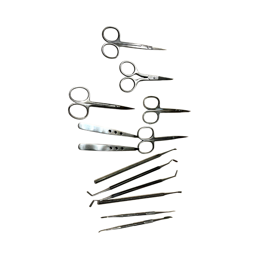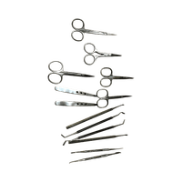 Set of stainless steel nail and cuticle care tools, 12 pieces.