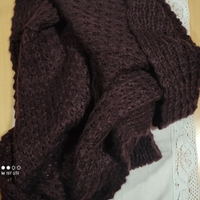 Paksu, neulottu tuubihuivi, lämmin ja pehmeä. Käyttämätön, laput irroitettu. Tumma ruskea tai hyvin tumma viininpunainen.