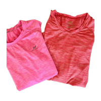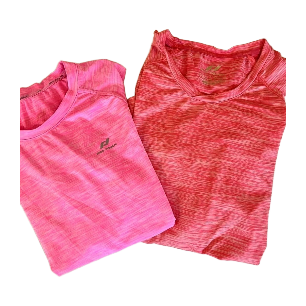 Kaksi hyväkuntoista Pro Touch -merkin teknistä urheilupaitaa. Miellyttävän tuntuista materiaalia. Tummanpunainen koko 34, pinkki on samaa kokoa, mutta ostettu nuorten puolelta (koko 152). #urheilupaita #sportshirt #gymwear