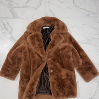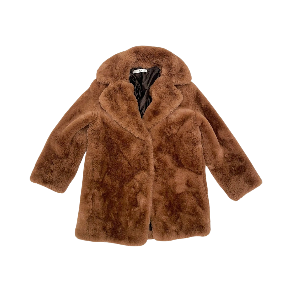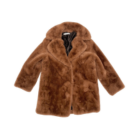 Hyvä kuntoinen tekoturkkitakki. Nepparikiinnitys, taskut sivusaumojen kohdalla.