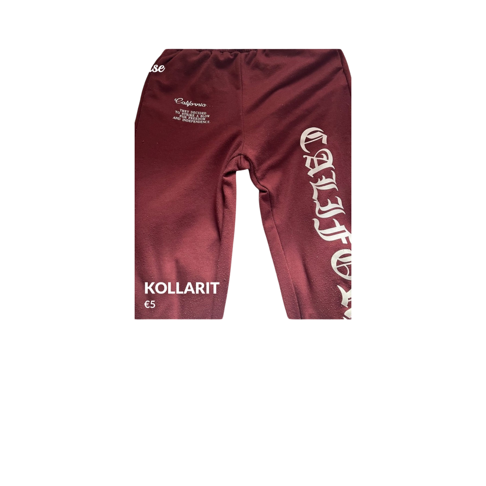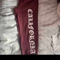 Burgundy sweatpants with white printed text, elastic waistband. Also selling in tise, photos are straight from there. As a 170cm tall, the sweats are a bit too short for me so that’s why i’m selling them:)