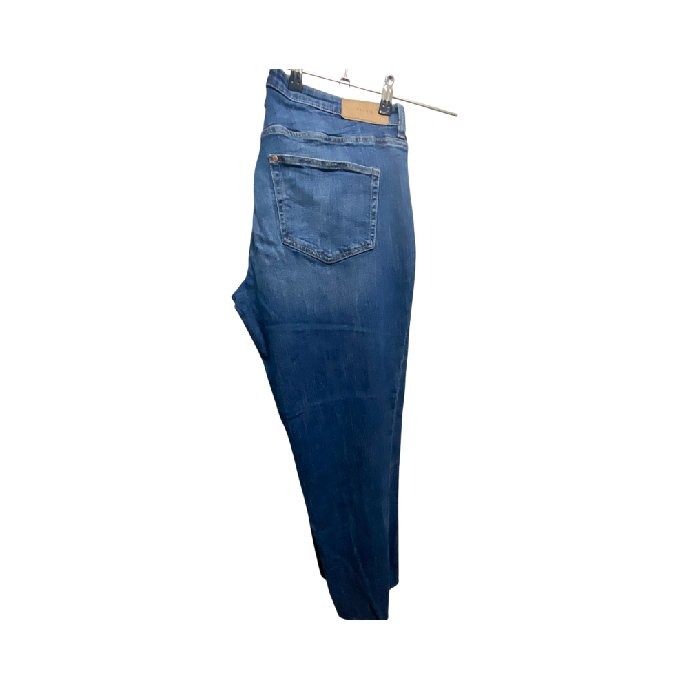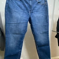 Siniset suorat farkut, Malli grilfriend, regular waist. Vyötärö 97 cm, pituus haarasta 67 cm.. 99 % puuvilla, 1 % elastaani. Koira/kissatalous.