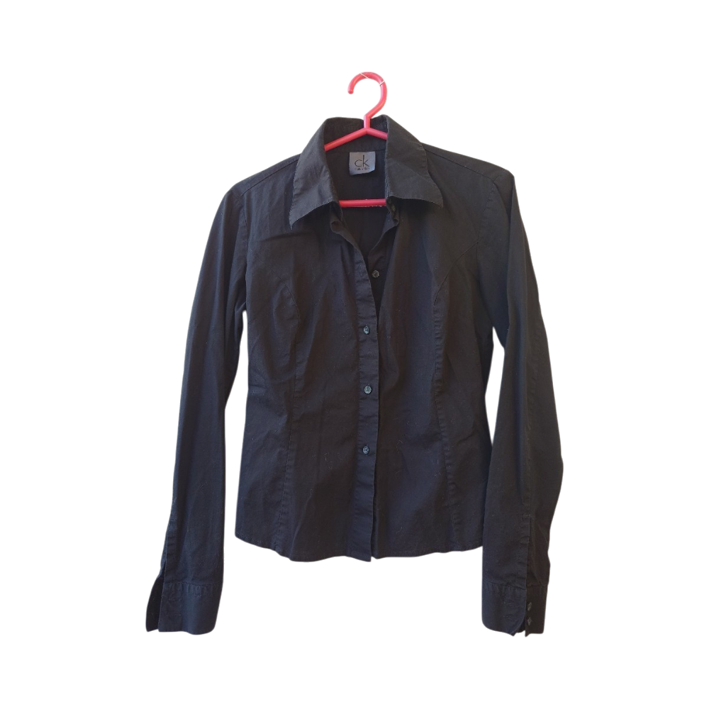 Musta kauluspaita, slim fit, pitkähihainen. Kevyesti joustava. Koko 36/ S
