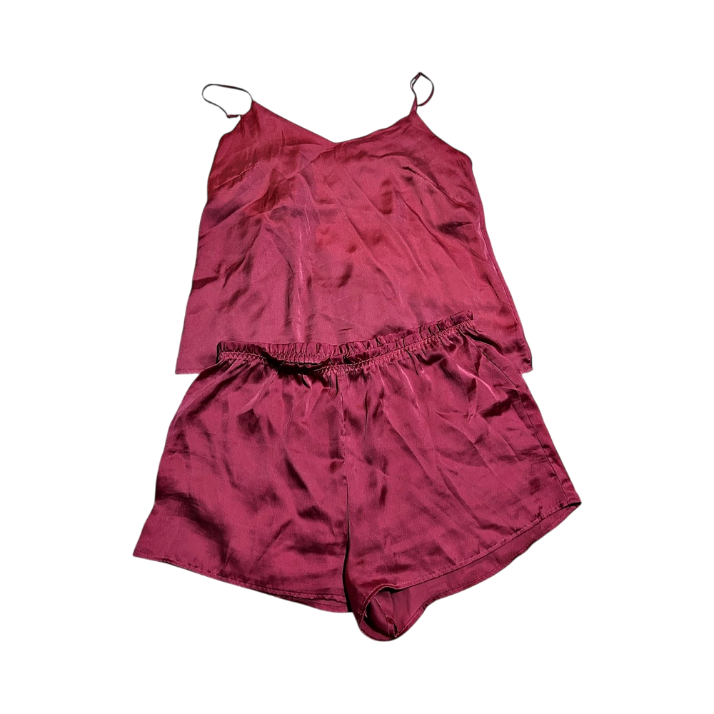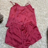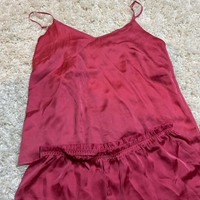satiininen pyjamasetti, laput leikattu irti.
