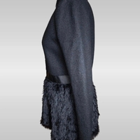 Stunning Emporio Armani jacket crafted from premium black wool with a luxurious faux fur hem and leather-look waistband detail.